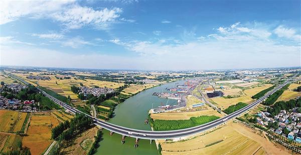 5月27日,周口港中心港區(qū)在碧水、藍(lán)天、白云、金色麥浪、秀美村莊的映襯下,顯得十分壯美。近年來,我市利用水陸交通優(yōu)勢,加快構(gòu)建“鐵公機(jī)水”多式聯(lián)運(yùn)體系,努力從“經(jīng)濟(jì)通道”邁向“通道經(jīng)濟(jì)”。