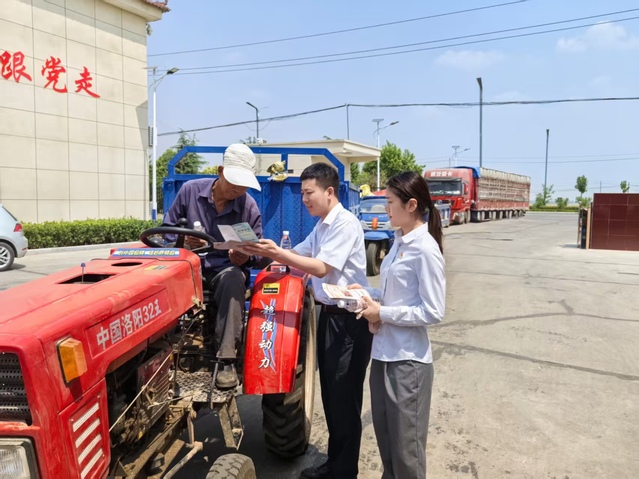 在此基礎(chǔ)上,該行組織志愿者到鄉(xiāng)村合作社和糧食收購站開展送清涼活動,為交糧農(nóng)戶和收購人員送上飲用水,遞上宣傳折頁,向他們講解工商銀行的普惠金融業(yè)務(wù),介紹為農(nóng)村合作社、種糧大戶、糧食收購站量身定制的“種植e貸”“糧食收購貸”等金融產(chǎn)品;為他們宣傳國家金融惠農(nóng)政策,普及反電信詐騙、反假幣知識,切實守好自身“錢袋子”。