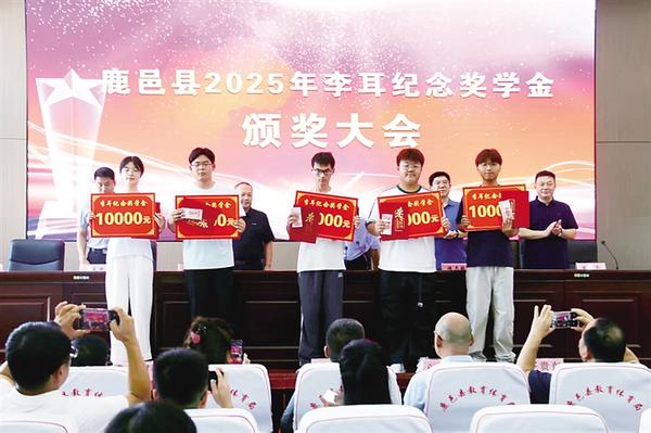 8月15日,鹿邑縣2025年李耳紀念獎學金頒獎大會在縣教體局舉行。侯璇青、李易澤等10位優(yōu)秀學子獲得獎學金。圖為與會領導和獲獎學子合影留念。 記者 侯國防 通訊員 宋夢麗 攝