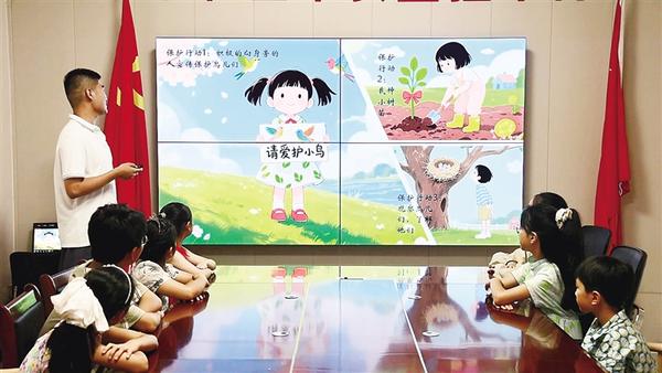 返鄉(xiāng)大學(xué)生志愿者魏柏宇向孩子們介紹珍稀鳥類的外形特征、生活習(xí)性與生存現(xiàn)狀。近日,鄲城縣自然資源局組織工作人員、返鄉(xiāng)大學(xué)生志愿者到該縣新城街道秀水社區(qū)開辦科普課堂,旨在通過(guò)生動(dòng)講解與互動(dòng)實(shí)踐,深化社區(qū)青少年對(duì)生態(tài)保護(hù)的認(rèn)識(shí)。記者 徐松 通訊員 陳吳陸 攝