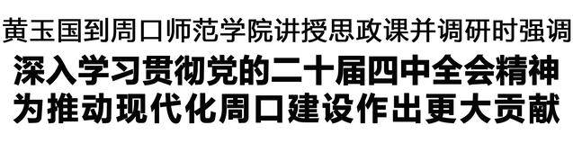 本報(bào)訊 (記者 王艷 劉昂) 12月19日,市委書(shū)記黃玉國(guó)到周口師范學(xué)院為師生代表講授思政課,宣講黨的二十屆四中全會(huì)精神,并到教學(xué)科研一線(xiàn)調(diào)研。