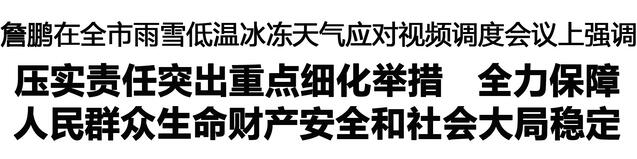 本報(bào)訊 (記者 李鳳霞) 1月18日,市長詹鵬主持召開全市雨雪低溫冰凍天氣應(yīng)對視頻調(diào)度會議,強(qiáng)調(diào)要深入學(xué)習(xí)貫徹習(xí)近平總書記關(guān)于防災(zāi)減災(zāi)救災(zāi)的重要指示精神,貫徹落實(shí)省委和市委決策部署,以“時(shí)時(shí)放心不下”的責(zé)任感,扎實(shí)有效應(yīng)對雨雪低溫冰凍天氣,確保人民群眾生命財(cái)產(chǎn)安全和社會大局和諧穩(wěn)定??钻枴⒅煜蜿?、張建黨、程若光、王文峰出席會議。