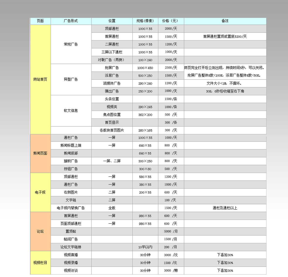 廣告形式及價格