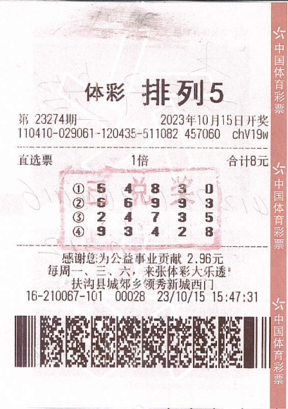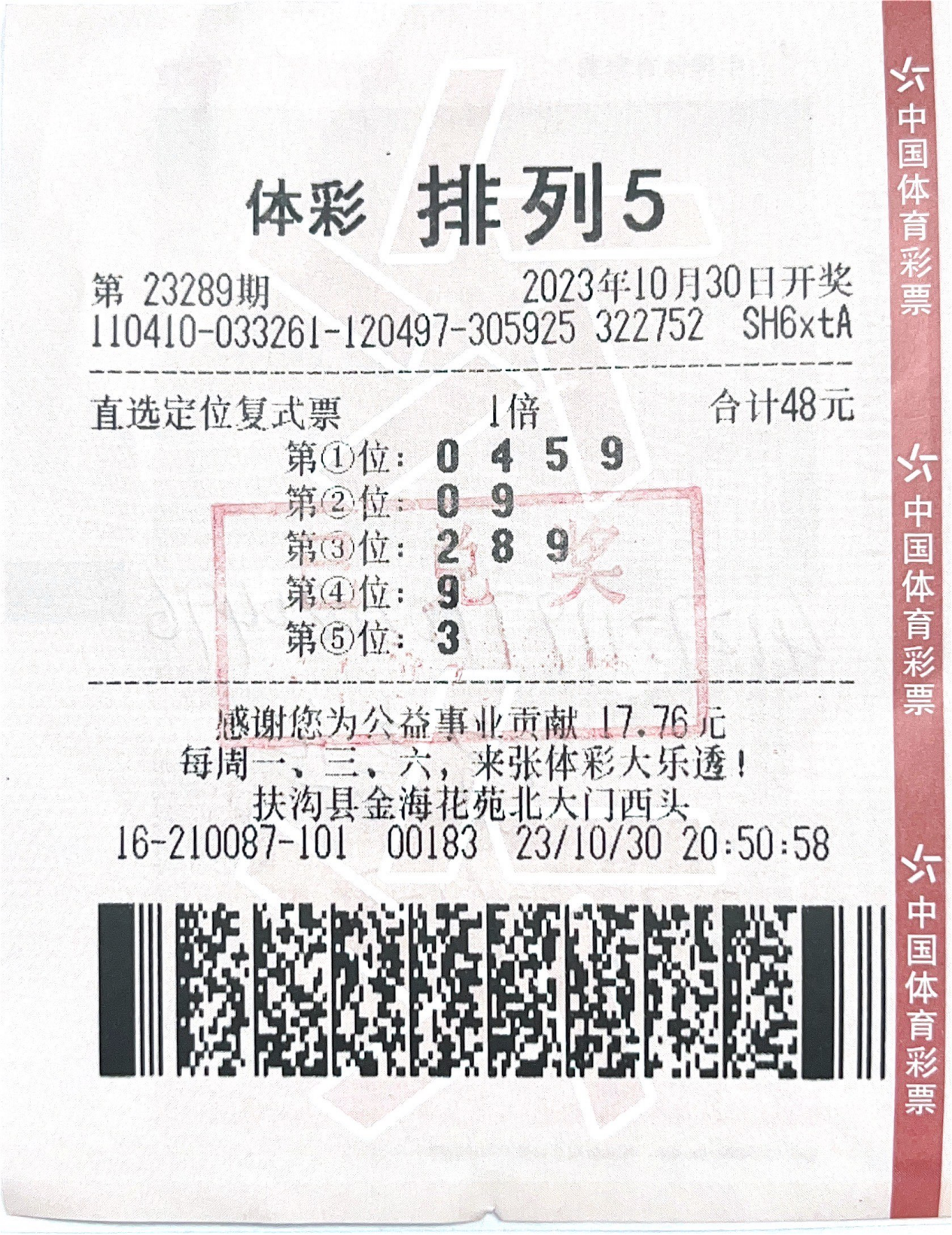 10月30日晚,體彩“排列5”第23289期開獎,開獎號碼為“9、9、8、9、3”。扶溝縣4116210087實體店喜中“排列5”一等獎1注,獎金10萬元。10月31日,中獎?wù)哧懴壬鷣淼街芸隗w彩分中心兌獎大廳領(lǐng)取了獎金。