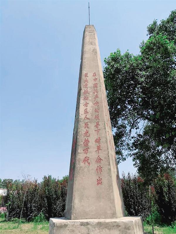 在西華艾崗鄉(xiāng)三崗(陵頭崗、都城崗、苗里崗三個村的合稱)普理學(xué)校,有一座沖天錐形建筑,就是中共豫東特委紀(jì)念塔。它建成于1956年,塔高8米,每天都向人們訴說著一段光輝的革命歷史。