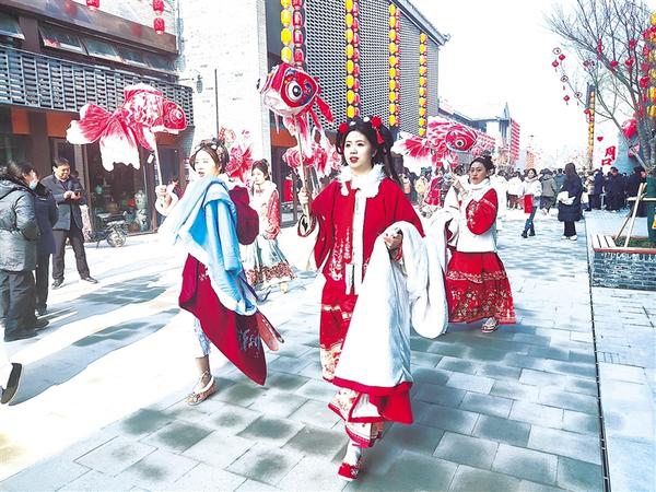 翠袖紅裙、直襟長袍……身著漢服的演員,手持魚燈,巡游關(guān)帝老街,伴隨著樂曲翩翩起舞,成為一道靚麗的風(fēng)景線。[詳細]