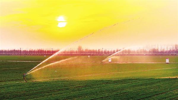 12月8日,在扶溝縣大李莊街道中營村的農(nóng)田里,農(nóng)戶正抓緊趁晴好天氣為冬小麥澆灌封凍水。