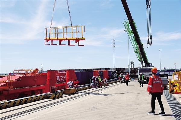 近期,周口中心港從上海振華重工(集團(tuán))股份有限公司購(gòu)置的首批自動(dòng)化港機(jī)設(shè)備陸續(xù)抵達(dá)周口中心港,8月底前將全部完成安裝調(diào)試。