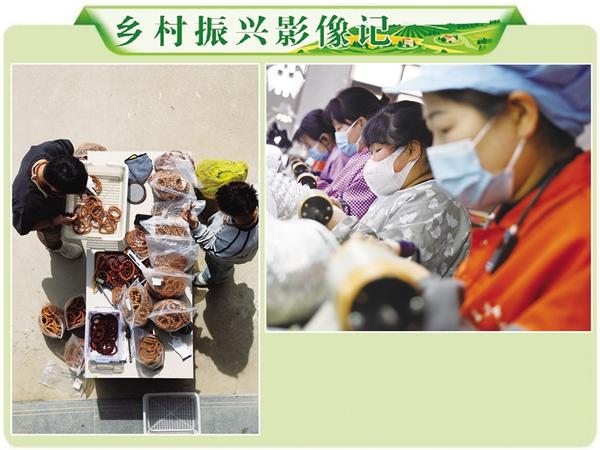 淮陽區(qū)葛店鄉(xiāng)回龍集村民依托傳統(tǒng)核桃雕刻技藝,創(chuàng)新打造“工廠+數(shù)字電商”融合發(fā)展模式,構(gòu)建起“原料加工—?jiǎng)?chuàng)意設(shè)計(jì)—雕刻生產(chǎn)—電商營銷”全鏈條文玩產(chǎn)業(yè)體系,成為鄉(xiāng)村振興背景下電商賦能的典型案例。圖為4月1日村民在車間加工文玩核桃(上)及通過直播平臺(tái)銷售產(chǎn)品(左)的場景。