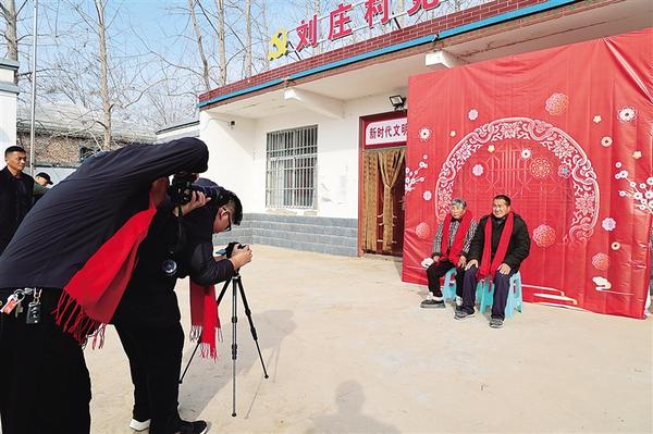 1月21日,攝影師為村民拍攝照片。當(dāng)天,周口日報社攜手周口市攝影家協(xié)會,到淮陽區(qū)馮塘鄉(xiāng)劉莊村開展慰問活動。此次活動不僅為村民免費拍攝夫妻照與全家福照,還向村民贈送了春聯(lián)和羊毛圍巾,為他們送上濃濃的祝福。