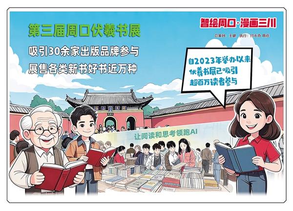 龍湖碧波映羲陵,時(shí)代書香沁古城。近日,第三屆周口伏羲書展從淮陽移師周口中心城區(qū),繼續(xù)開展專場展銷活動(dòng)。本屆書展以“讓閱讀和思考領(lǐng)跑AI”為主題,聚焦“閱讀價(jià)值升維”,重點(diǎn)展售經(jīng)典人文、認(rèn)知提升、深度思考類圖書。