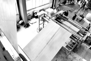 淮陽縣銀豐塑料有限公司流水生產(chǎn)線一瞥。該公司擁有大中型吹塑膜機(jī)組40多臺、制袋生產(chǎn)線6條,并擁有完備的塑料制品化驗檢測設(shè)備。生產(chǎn)的農(nóng)用塑料膜等產(chǎn)品暢銷蘇、魯、豫、皖等地,遠(yuǎn)銷美國、韓國等國家。(記者 沈湛 攝)