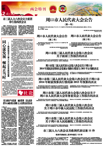 | 周口市第三屆人民代表大會第六次會議關(guān)于周口市 2014年財政預(yù)算執(zhí)行情況和2015年預(yù)算的決議 | |