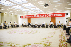 會(huì)見(jiàn)中,皇甫立新首先向全國(guó)勞模林峰和市勞動(dòng)模范表示熱烈的祝賀和誠(chéng)摯的慰問(wèn),同時(shí)通過(guò)勞模向全縣廣大勞動(dòng)人民,向戰(zhàn)斗在各條戰(zhàn)線上的勞動(dòng)者表示慰問(wèn)。他說(shuō),市勞動(dòng)模范表彰大會(huì)剛剛結(jié)束,全縣30多名勞動(dòng)模范受獎(jiǎng),特別是林峰獲得全國(guó)勞動(dòng)模范這一殊榮,頒獎(jiǎng)大會(huì)規(guī)格之高歷史上不多見(jiàn),不僅是個(gè)人的榮耀,更是全縣人民的榮耀。
