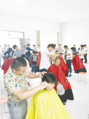 5月4日,團(tuán)縣委組織29家理發(fā)店50名理發(fā)師,在縣老干部活動中心開展了慶“五四”免費(fèi)為環(huán)衛(wèi)工人義剪獻(xiàn)愛心活動。200多名環(huán)衛(wèi)工人在理發(fā)師的精心打理下發(fā)型煥然一新,精神抖擻。(團(tuán)軒 攝)