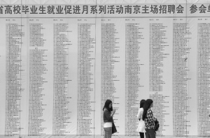 江蘇南京舉辦大學(xué)生專場招聘會(huì) 5月10日,在南京國際展覽中心,大學(xué)生在瀏覽用人單位招聘信息。當(dāng)日,2015年江蘇省高校畢業(yè)生就業(yè)促進(jìn)月系列活動(dòng)南京主場招聘會(huì)在南京國際展覽中心舉行,千余家用人單位提供了3萬多個(gè)就業(yè)崗位,引來近4萬名大學(xué)生前來洽談應(yīng)聘。新華社發(fā)
