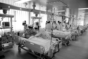 5月4日上午8點(diǎn)45分,記者走進(jìn)了周口市中醫(yī)院綜合病房樓七樓的重癥醫(yī)學(xué)科(即ICU病房),護(hù)士長徐亞鵬熱情地接待了我們。在徐亞鵬的介紹下,我們親眼目睹了重癥醫(yī)學(xué)科內(nèi)病人的各種反應(yīng)。當(dāng)天病人不太多,10個床位只有7個病人,其中有產(chǎn)后大出血的、有肝癌晚期的、有有機(jī)磷農(nóng)藥中毒的……幾乎每個人都上著呼吸機(jī)。身著紫色護(hù)士服的“天使”們在各種儀器和各個危重病人間來回穿梭。