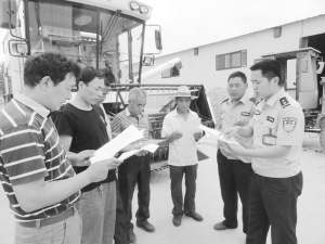 昨日,商水縣舒莊鄉(xiāng)派出所民警正在杜店村遠(yuǎn)豐農(nóng)機(jī)專業(yè)合作社向農(nóng)機(jī)手宣傳“三夏”生產(chǎn)安全知識(shí)。為確?!叭摹鄙a(chǎn)安全,舒莊鄉(xiāng)派出所印發(fā)2000份《三夏安全生產(chǎn)知識(shí)宣傳單》,組織民警深入田間地頭和農(nóng)家小院向農(nóng)機(jī)手們面對(duì)面進(jìn)行安全生產(chǎn)宣傳。(喬連軍 攝)