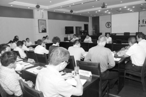 5月14日晚,周口農(nóng)行組織召開(kāi)黨委中心組學(xué)習(xí)(擴(kuò)大)會(huì)議,集體學(xué)習(xí)《金融互聯(lián)網(wǎng)知識(shí)講座》、《黨建知識(shí)及上級(jí)行黨建工作有關(guān)要求》等內(nèi)容。圖為學(xué)習(xí)現(xiàn)場(chǎng)。(彭濤 攝)
