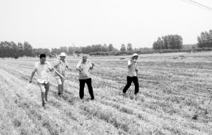 “今天是咱行政村夏收關(guān)鍵的掃尾階段,2000多畝小麥已經(jīng)收割了90%多,如果沒有大的問題,今天全村將順利完成今年的夏收任務(wù)。但是,擺在大家面前的搶種和安全防火任務(wù)還相當(dāng)繁重,今年的墑情比往年好,大家還要再加把勁兒,督促群眾盡快將秸稈清理干凈,力爭在三天內(nèi)全行政村實(shí)現(xiàn)麥?zhǔn)?、地凈、種結(jié)束?!壁w長領(lǐng)叮囑村干部。