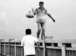 本報(bào)綜合消息 一位年過(guò)半百的老伯,竟然踩在大橋的欄桿上,閑庭信步(下圖)……這并非是武俠片中的片段,而是9月3日7時(shí),掌上拍客張先生在重慶石板坡長(zhǎng)江大橋拍攝到的一幕,張先生說(shuō),老伯在欄桿上行走的速度不輸給常人在大道上步行的速度。同時(shí)在網(wǎng)上,也有很多網(wǎng)友稱目擊到了這一幕,并將當(dāng)時(shí)的所見(jiàn)所聞發(fā)在了網(wǎng)上,很多網(wǎng)友都稱老伯為“輕功哥”。