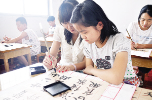書畫相輔相成 為弘揚“書畫同源”的中國傳統(tǒng)藝術,本中心常年班采取書畫相輔相成的教學方法,毛筆與硬筆相結(jié)合、書法與繪畫教學交替進行,以求事半功倍的教學效果。