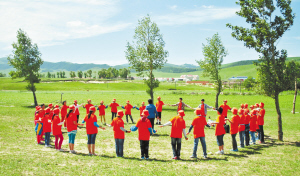 第二天:8:00到達北京,早餐后赴豐寧壩上草原,開營儀式;草原上拓展活動:快樂“拍拍拍”、“親手觀音”、“向前向前”、“排山倒?!钡扔螒?;晚上活動分享,書寫親情傳真。